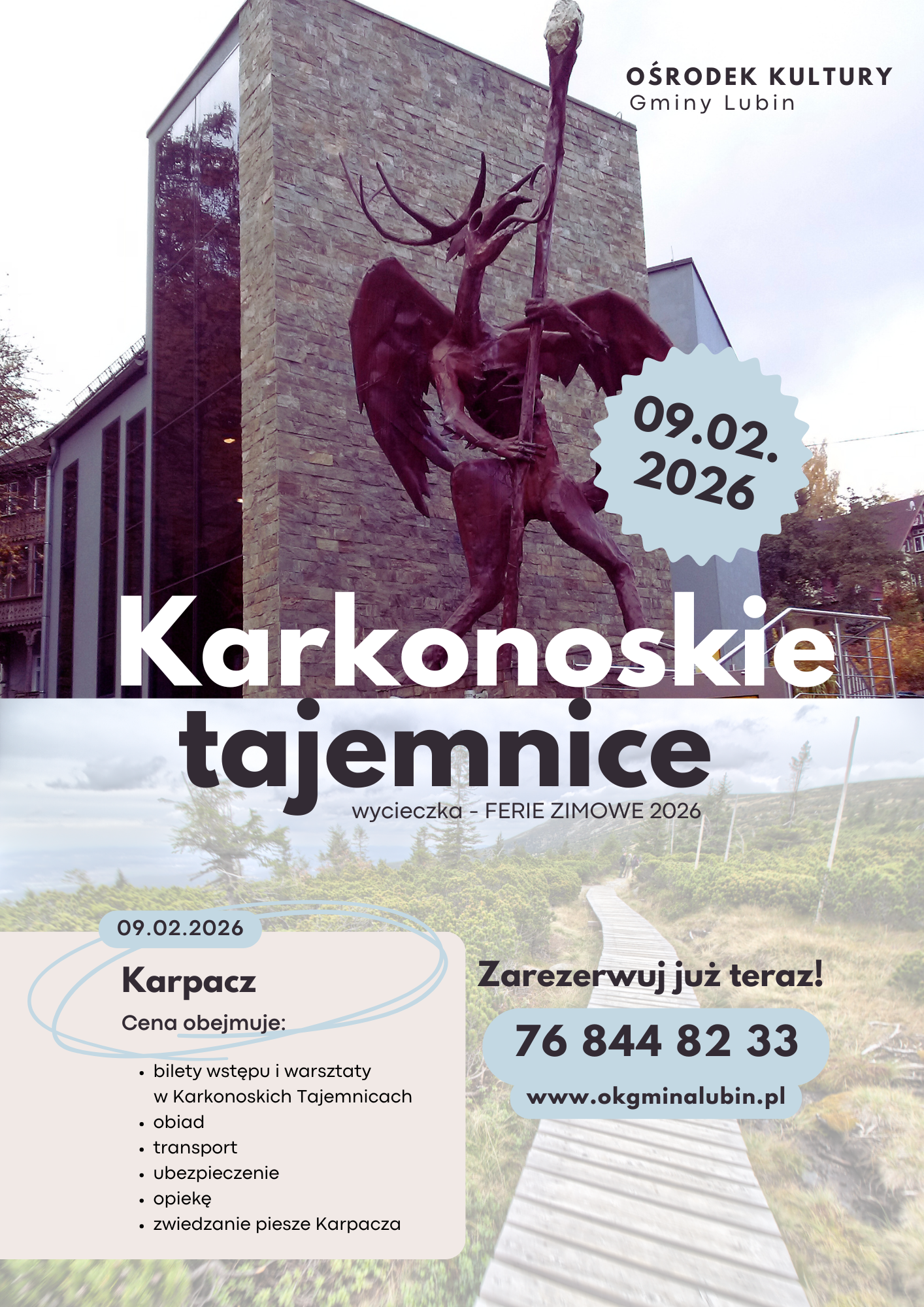 Nowością w tegorocznej ofercie jest wycieczka do Karpacza i wizyta w niezwykłej atrakcji turystycznej Karkonoskie Tajemnice. To magiczne miejsce pełne legend, interaktywnych instalacji i mroźnych opowieści o Duchu Gór. Dzieci zanurzą się tam w świat karkonoskich podań, zagadek i niesamowitych efektów wizualnych, które zachwycają odwiedzających w każdym wieku.