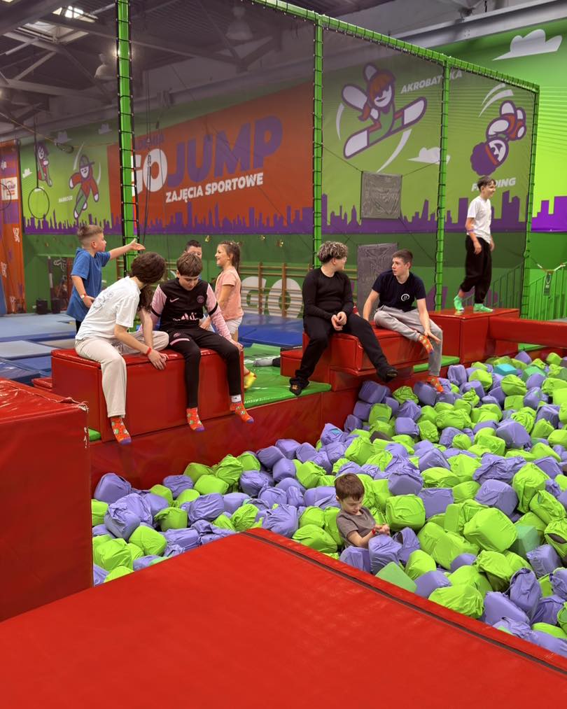 Odbyła się także wycieczka na sportowo do Wrocławia, do centrów Go Jump i Go Air. Uczestnicy skakali, pokonywali tory przeszkód, wykonywali wsady do kosza i wspinali się po ściankach, dając z siebie wszystko. To był dzień pełen ruchu, zdrowej rywalizacji i aktywności fizycznej, który pozwolił dzieciom rozwinąć sprawność, koordynację i ducha zespołowej zabawy.
