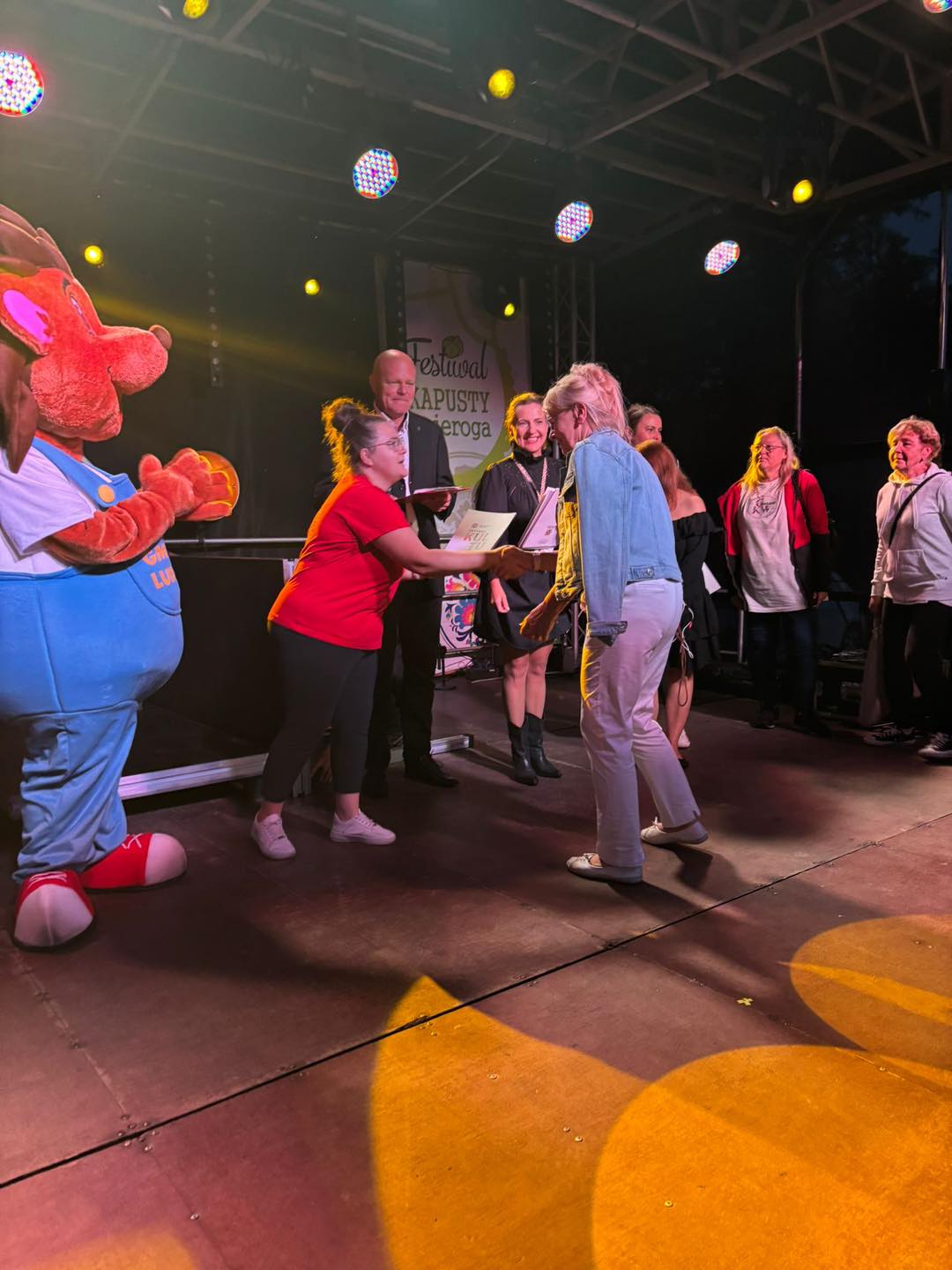 Podczas festiwalu nie zabrakło również interakcji z publicznością – uczestnicy mogli wziąć udział w zabawnych pytaniach związanych z kapustą i pierogami. Za poprawne odpowiedzi czekały drobne upominki, które nie tylko wywoływały uśmiech, ale też zachęcały do poznawania kulinarnych tradycji regionu.