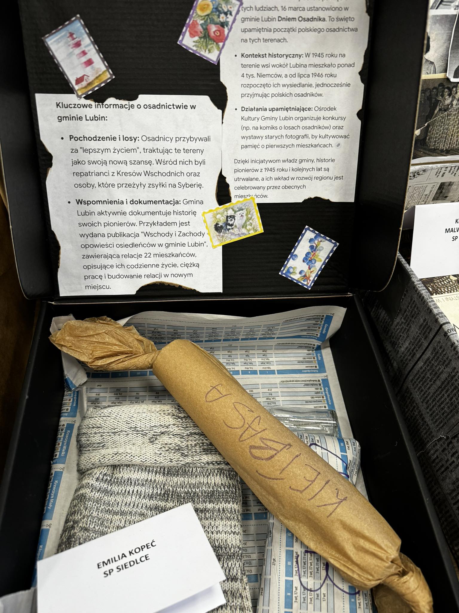 oraz dwie prace łączące dwa projekty„Walizka osadnika” i „Retro-fotografie”