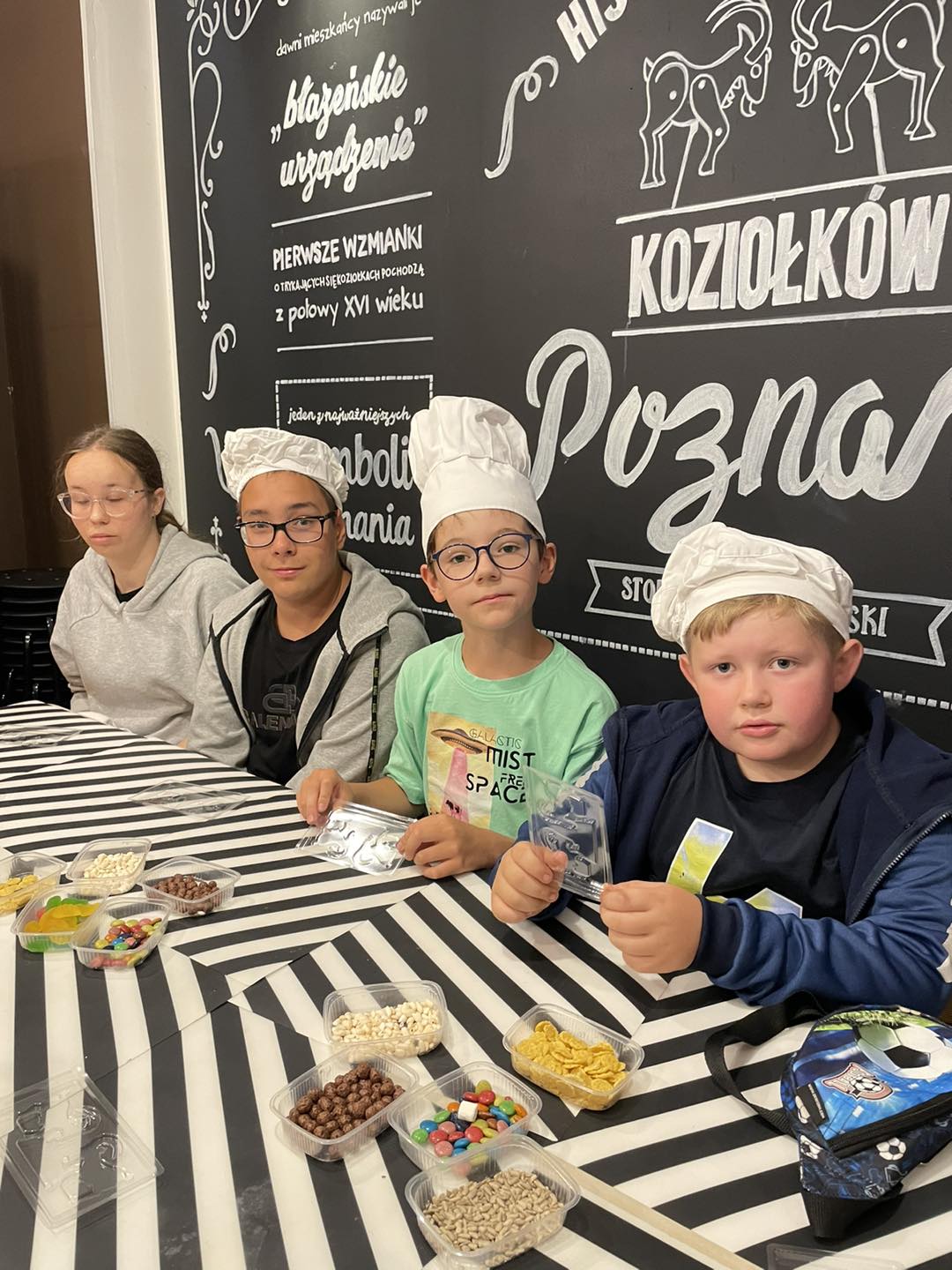 Nie był to jednak koniec słodkości, tego dnia wycieczka udała się do Rogalowego Muzeum w Poznaniu gdzie poznaliśmy historie słynnych poznańskich Koziołków. Następnie uczestnicy własnoręcznie wykonali pocztówki metodą piaskową oraz mieli małą lekcję gwary poznańskiej. Na sam koniec nie mogło zabraknąć legendy o Świętym Marcinie i oczywiście przyszedł czas na wykonanie słynnych Rogali Świętomarcińskich. Dzieciaki poznały recepturę na idealne ciasto oraz nadzienie i wspólnie wykonały słynny poznański przysmak.
