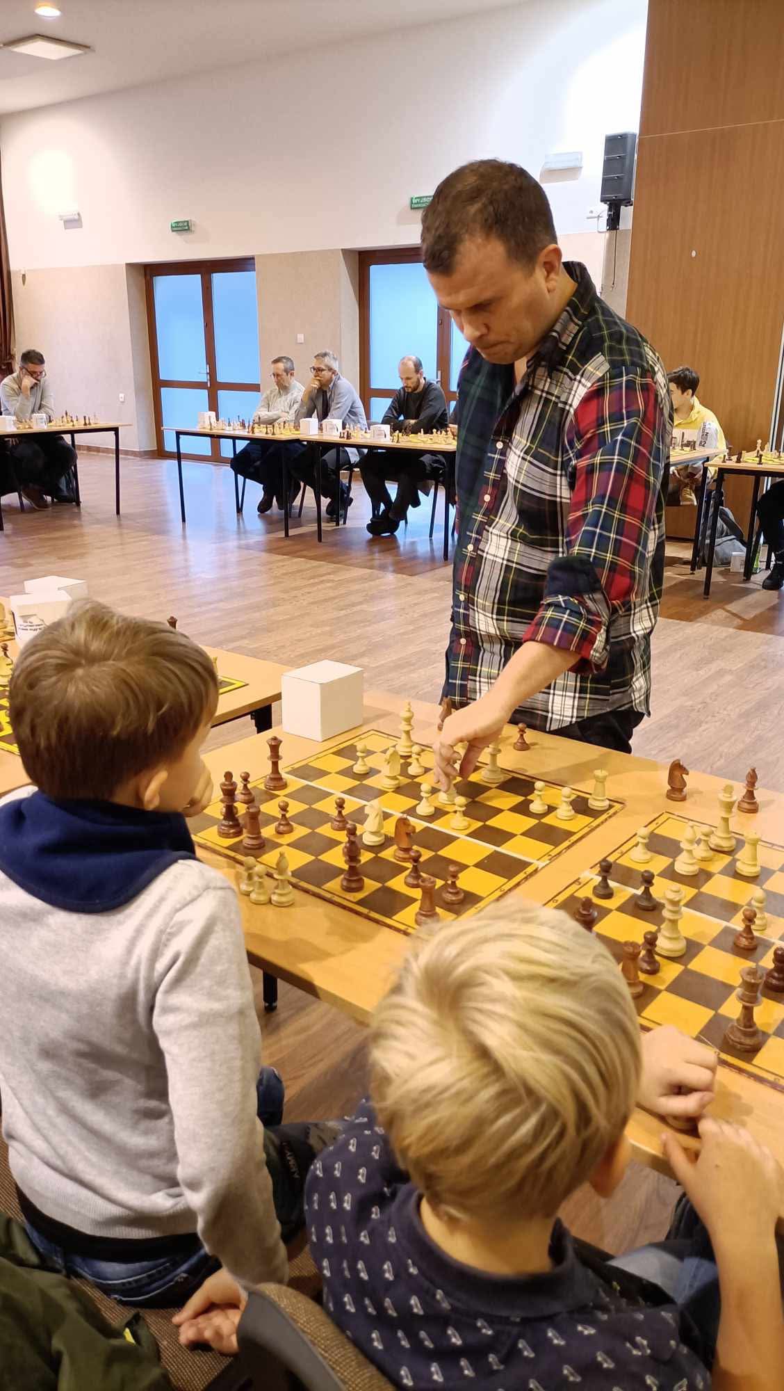 Do symultany szachowej zgłosiło się 27 miłośników tej królewskiej gry. Po ponad dwugodzinnych zmaganiach wszyscy uczestnicy, mimo ambitnej postawy, musieli uznać wyższość mistrza. Najlepszą partię w opinii zasłużonego trenera Józefa Bałdygi rozegrał Marcel Brodacki.